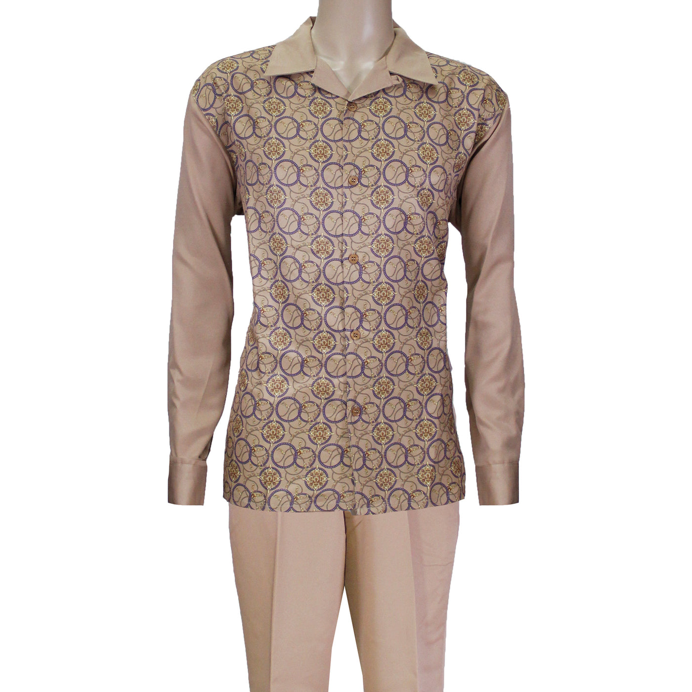 Camel Oval Swirl Montique Long Sleeve Set with Solid Pants